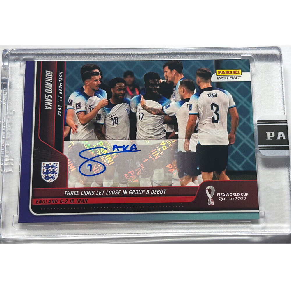 here is a brand new Panini Instant Turquoise autographed card for BUKAYO SAKA - 11/21/22. Buyer here receives card #2/10. Factory sealed in it's Panini case. Photos 1 & 2 shown are actual card that ships.