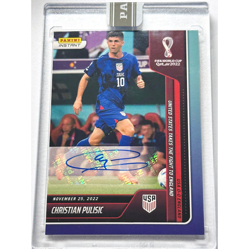 here is a brand new Panini Instant Turquoise autographed card for CHRISTIAN PULISIC - 11/25/22. Buyer here receives card #4/10. Factory sealed in it's Panini case. Photos 1 & 2 shown are actual card that ships.