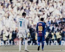 Offered here is a photo which measures 16" x 20" in size and has been hand-signed by Cristiano Ronaldo.