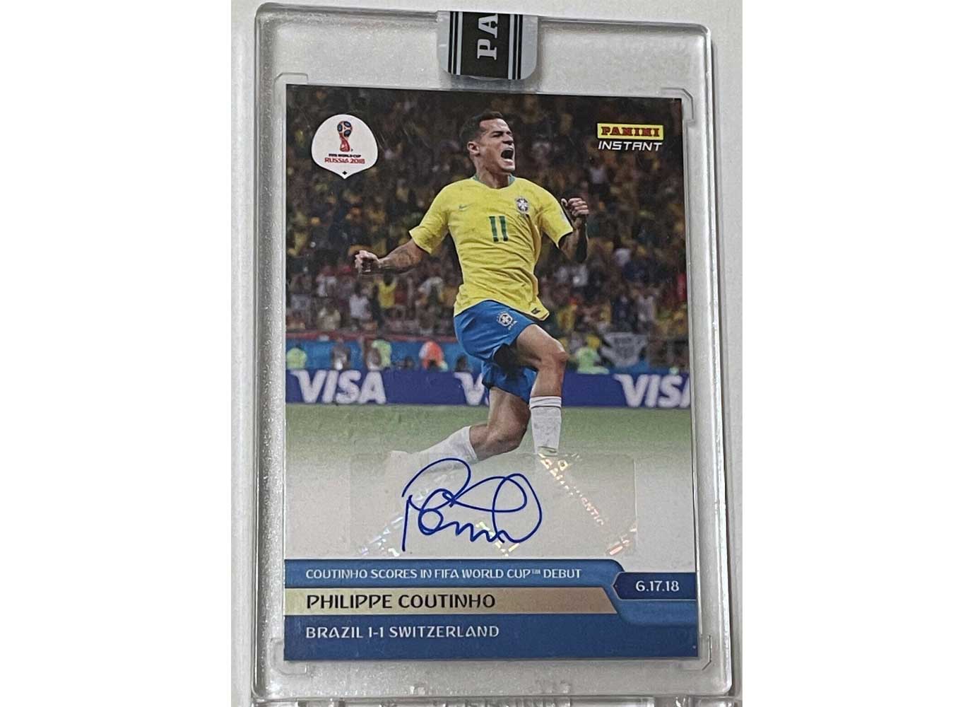 Offered here is a brand new Panini Instant extremely limited one day print run card signed by Philippe Coutinho - "Coutinho Scores In FIFA World Cup Debut" - 6/17/18 "Brazil 1-1 Switzerland". Limited supply of only 15 of these autographed cards were produced. Buyer here receives #5-of-15 exactly as shown in photos 1 & 2.